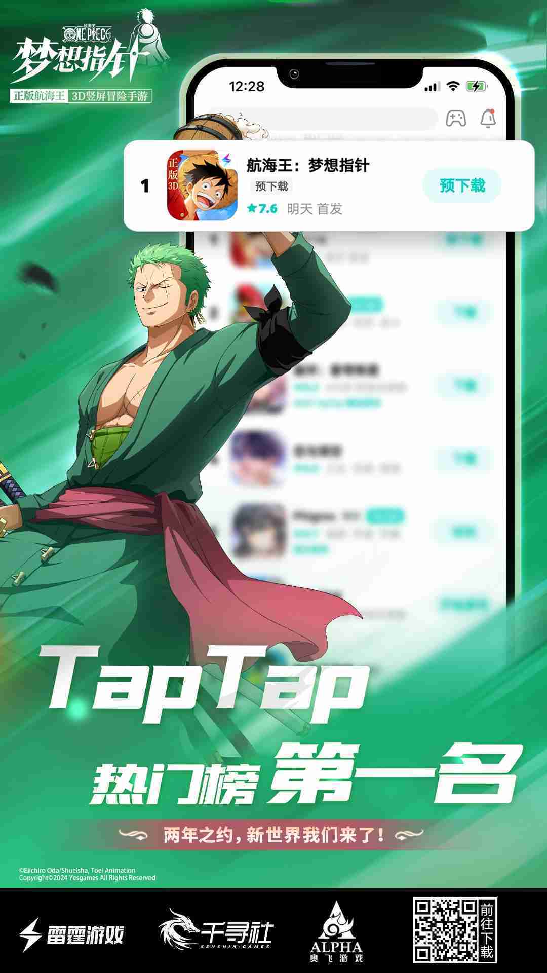 4月1日,,,,手游《航海王:::梦想指针》正式公测,,上线仅2小时不到就登上了App Store免费榜Top1,,与TapTap热门榜第一。。。