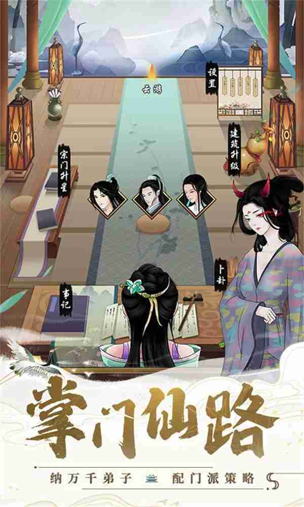 在游戏中,,,,玩家需要作为掌门去经营整个门派,,,可以兢兢业业,,,也可以做个甩手掌门,,,,或者不务正业,,,,寄情山水……总之一句话,,,,修仙不求人,,花式做掌门!!